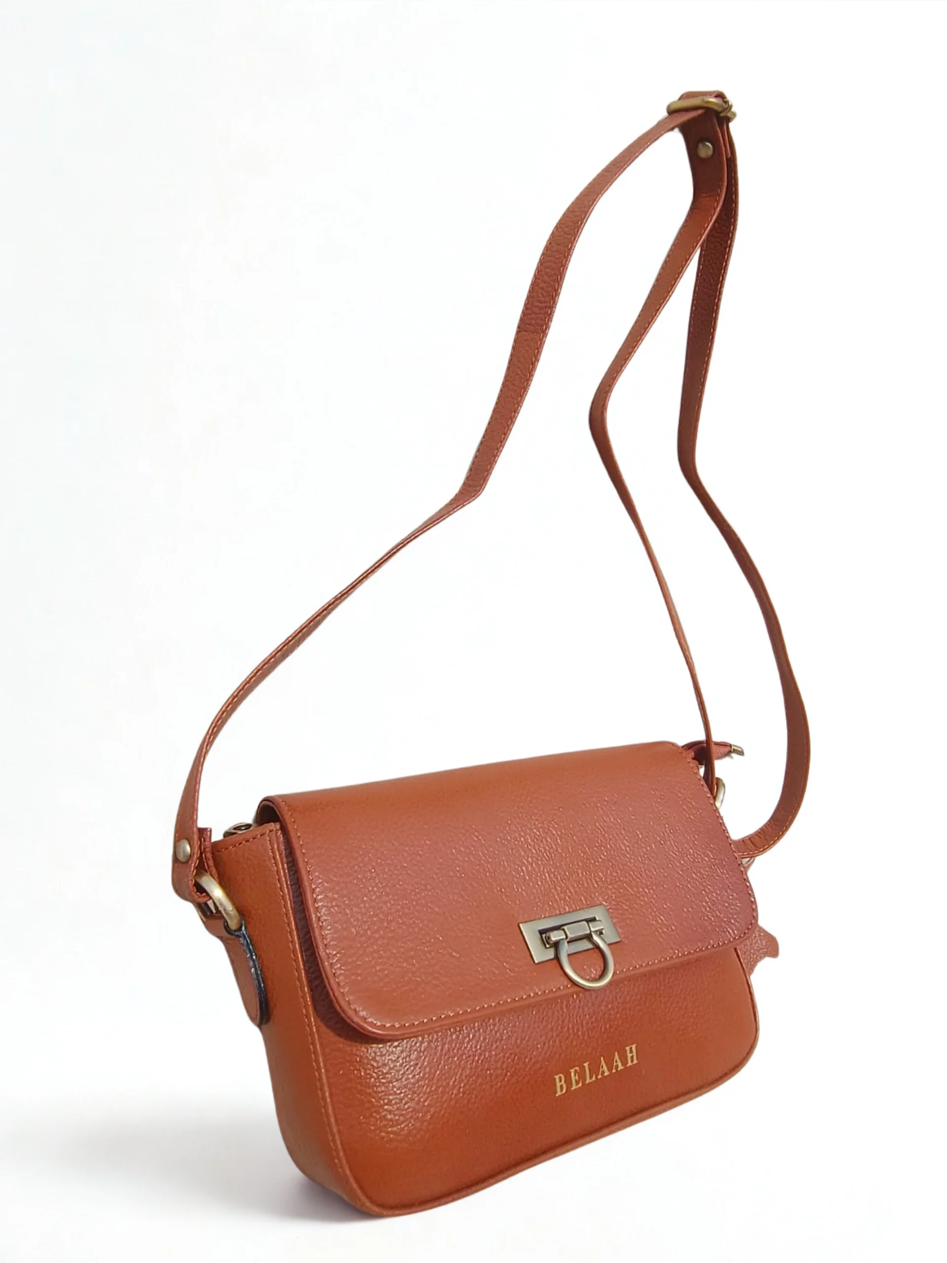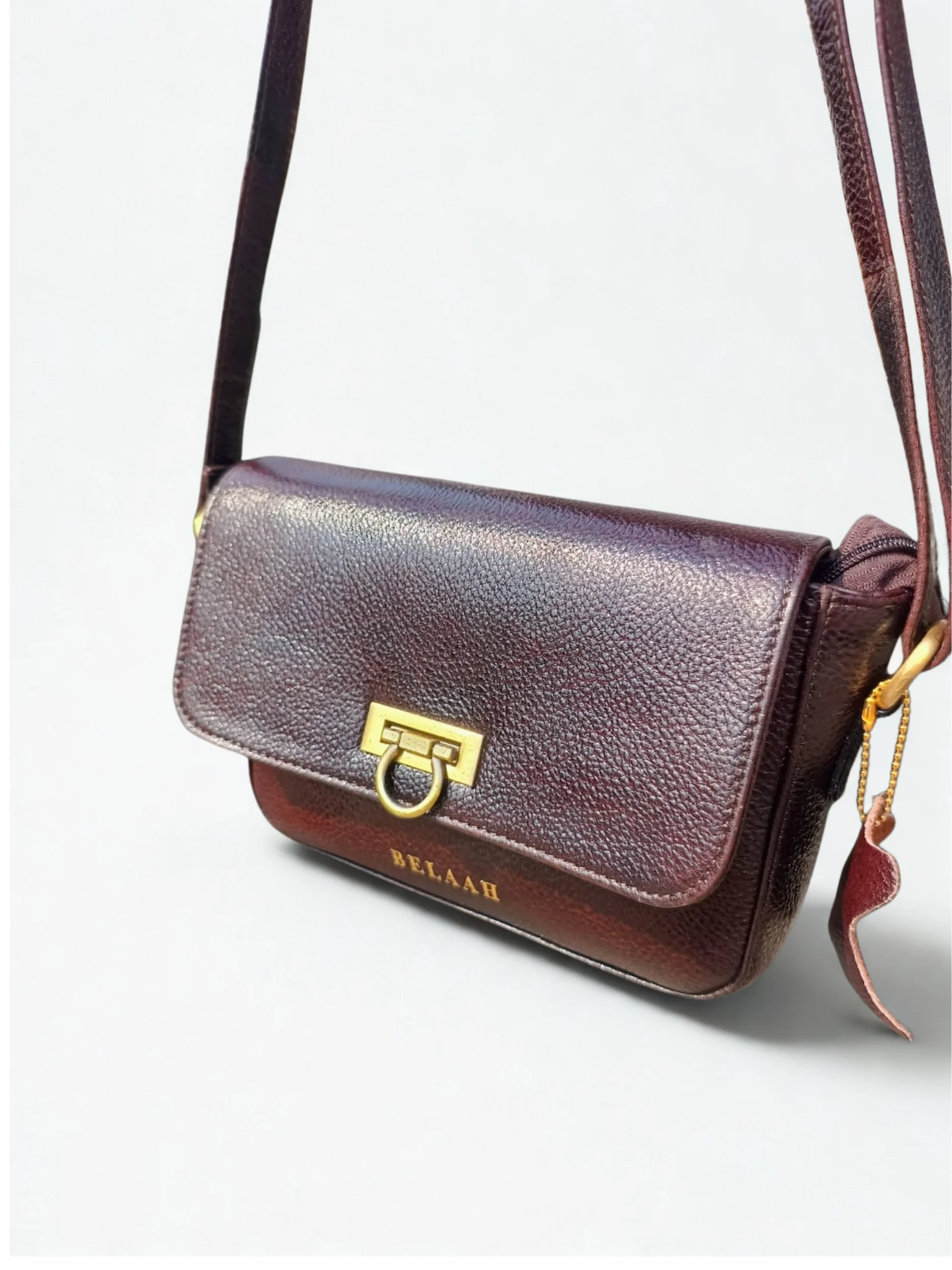 The Belaah Noire Sling Bag is the definition of compact, hands-free elegance. Crafted from supple genuine leather with a beautiful pebbled texture, this small yet essential bag is perfect for keeping your valuables close and secure. Its structured flap design and adjustable strap make it ideal for quick outings, travel, or any time you need to carry essentials without the bulk.