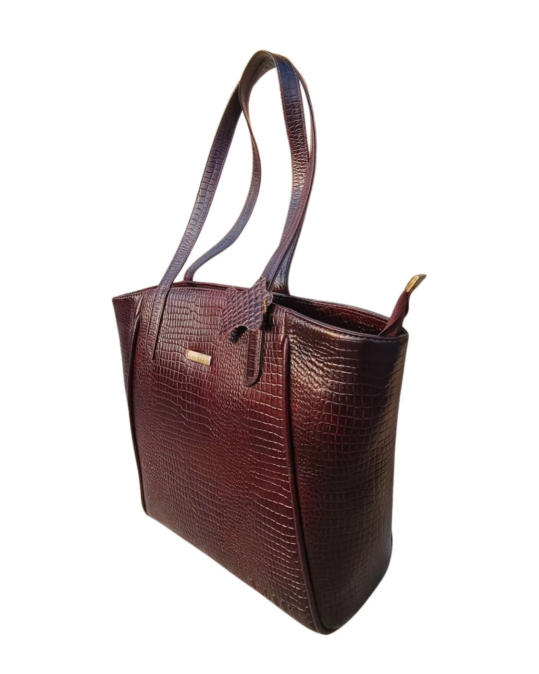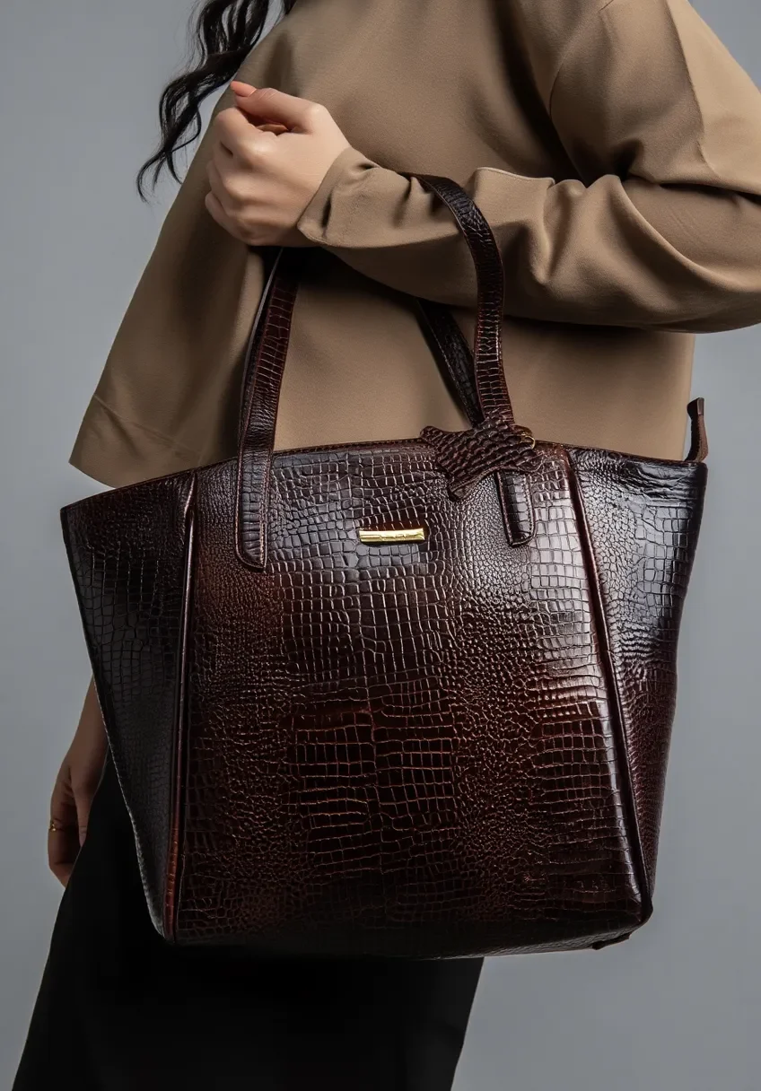 With the Belaah Lune Crocodile Embossed Tote, carry sophistication effortlessly. Handcrafted in India from premium genuine leather, this tote features a luxurious crocodile-textured finish. Designed for versatility and style, the Belaah Lune tote is the professional companion for your everyday ventures and business meetings.