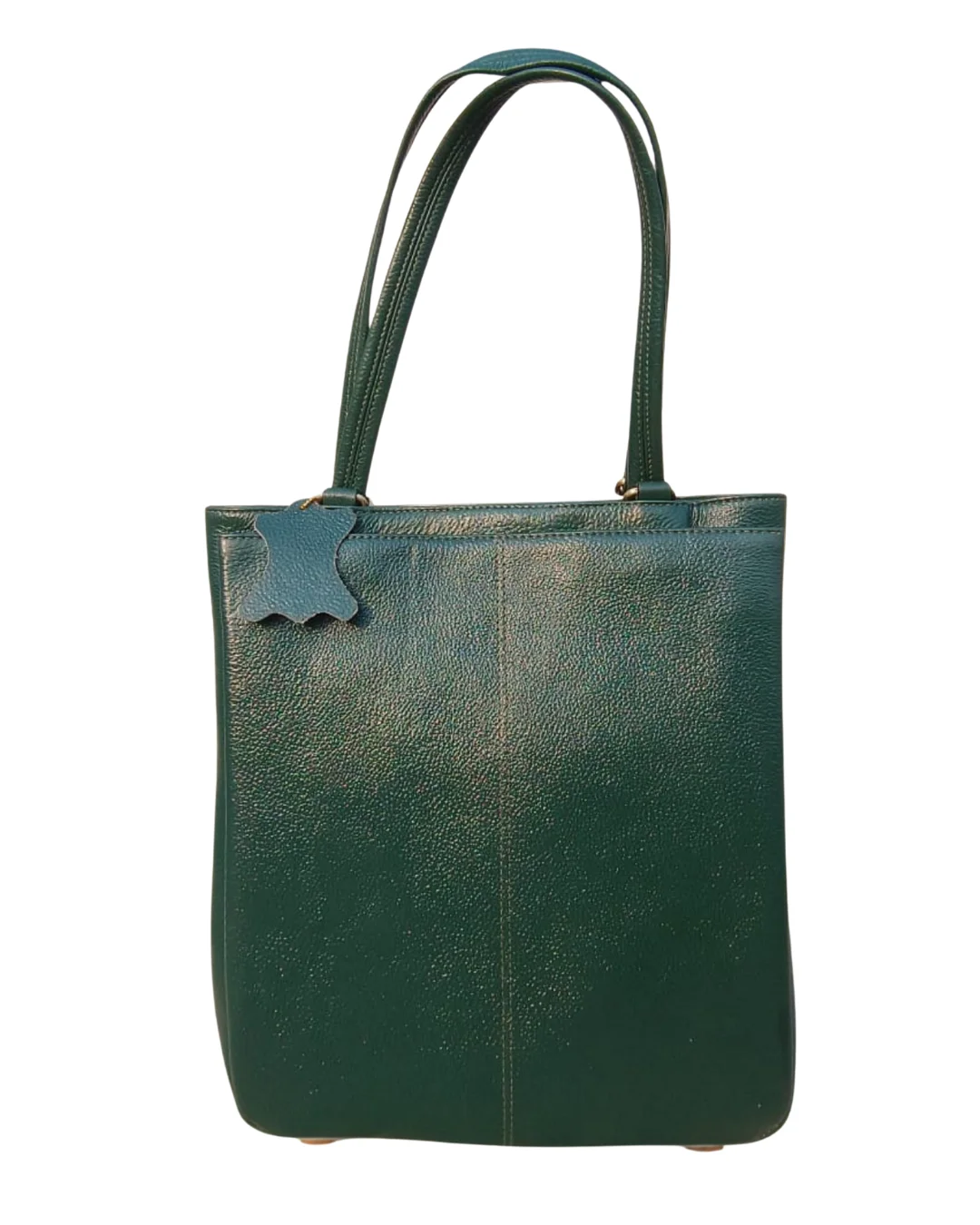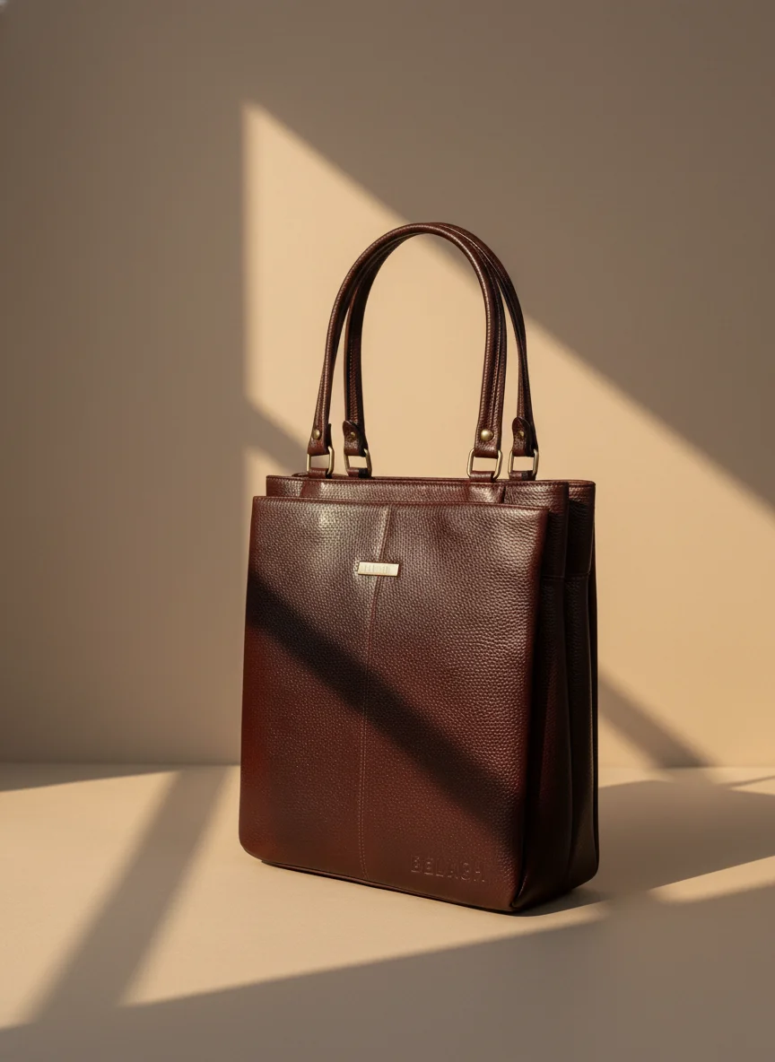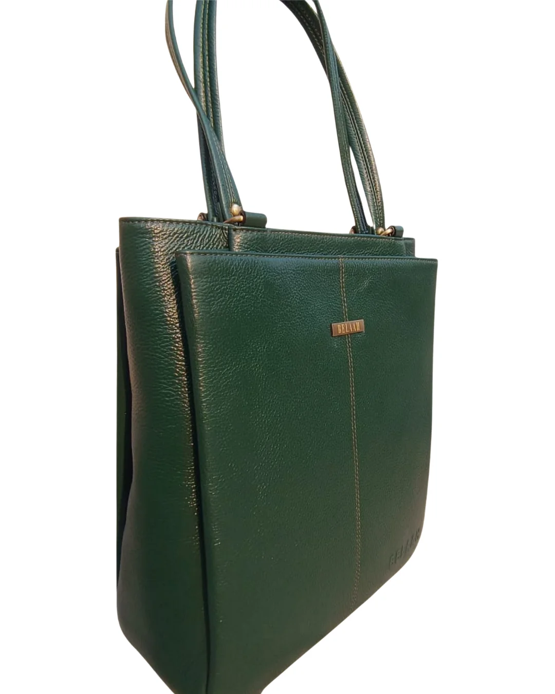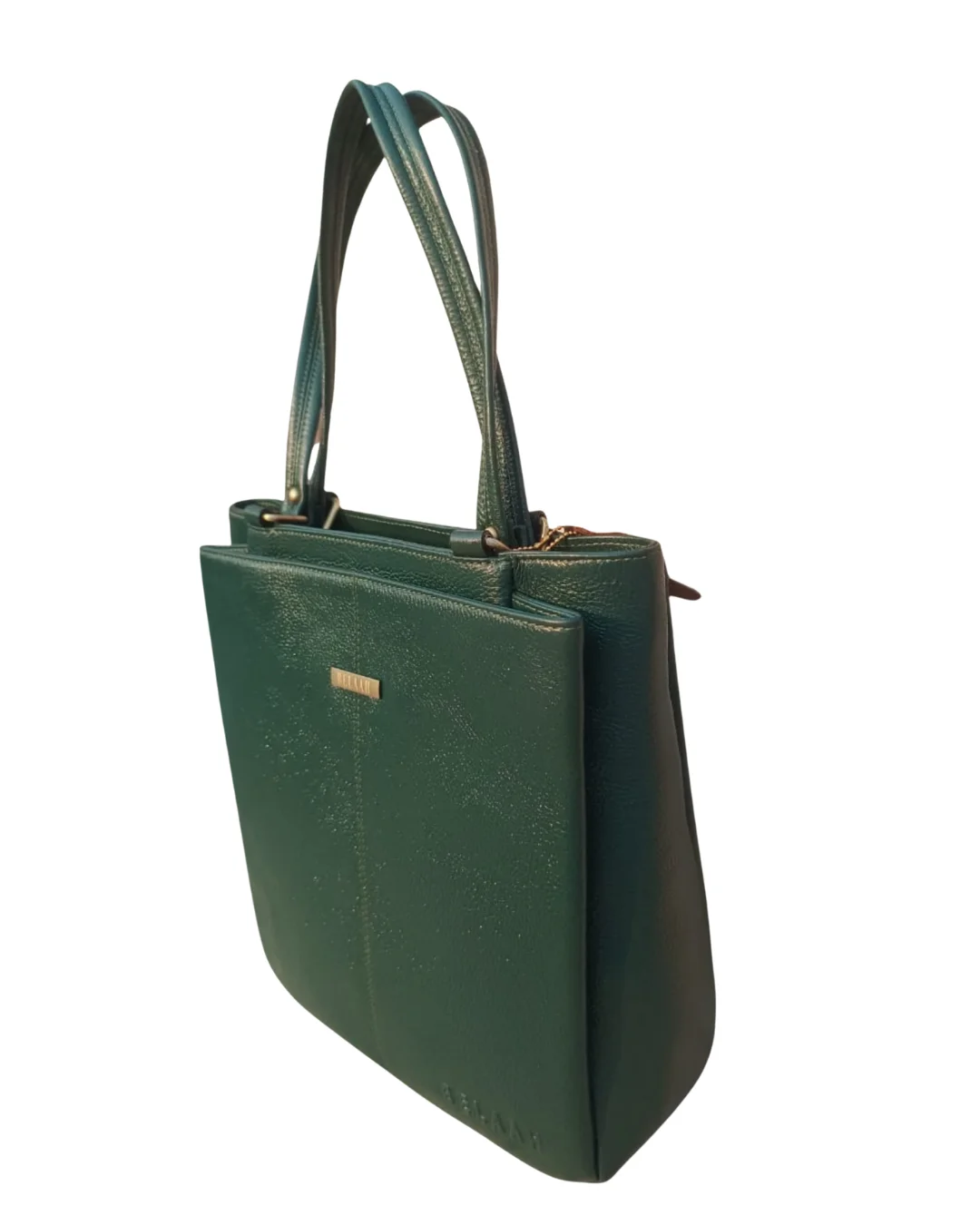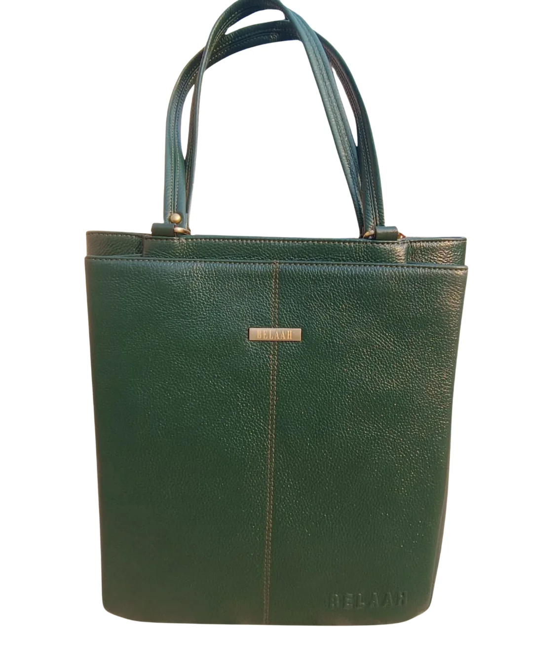 The Belaah Maison Smooth Leather Tote defines sophisticated simplicity. Crafted from supple genuine leather in a rich, deep hue like Forest Green, this bag features a clean, tall structure that maintains its refined silhouette. It is designed for the modern professional who favors minimalism and quality, providing secure, organized storage without compromising its sleek, vertical elegance.